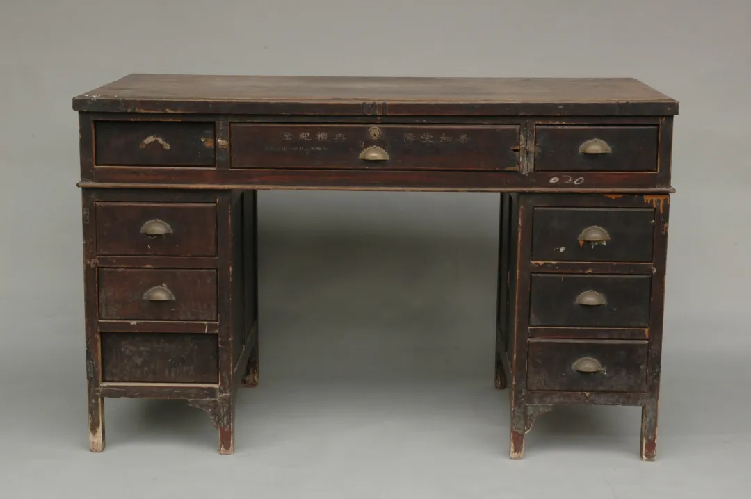 馆内珍藏着1945年8月21日中国战区受降典礼会场的珍贵文物——一张镌刻着历史印记的九屉办公桌。